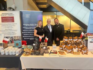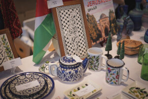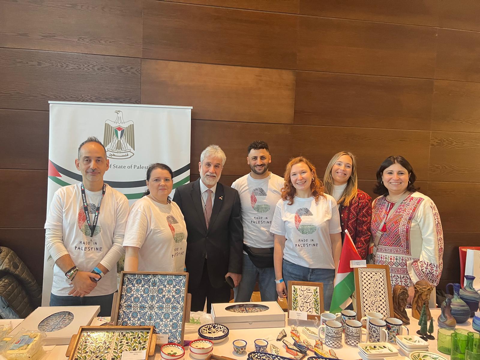 واشرفت حرم السفير السيدة اسيل خليفة وكادر سفارة دولة فلسطين على تنظيم جناح مميز زاخر بالعديد من المنتجات اليدوية الفلسطينية التي جرى استحضارها من فلسطين، الى جانب منتجات ومأكولات قدمها وتبرع بها رجال اعمال فلسطينيين في بولندا.