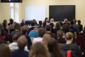 كما ألقت الوزيرة شاهين محاضرة امام طلبة كلية العلاقات الدولية وكلية الاداب الشرقية في الجامعة، أعقبها جلسة حوار واسئلة من قبل الطلبة.